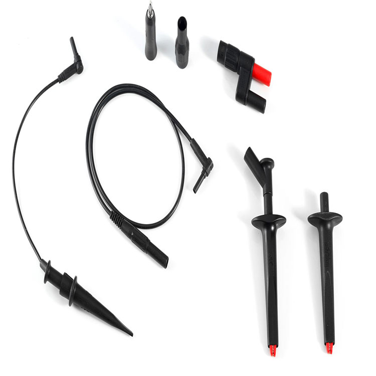 Contains test clip with steel jaws, push-on safety jaw clip, silicone-insulated reference leads, push-on Ø 4 mm test probe,