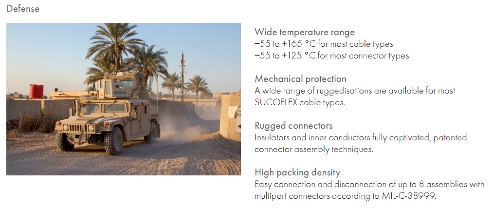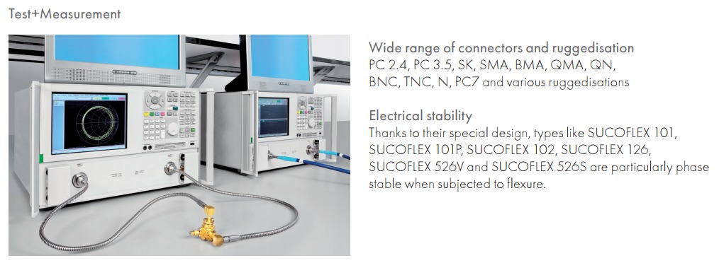 SUCOFLEX are flexible microwave cable assemblies offering better transmission characteristics than semi-rigid cables.