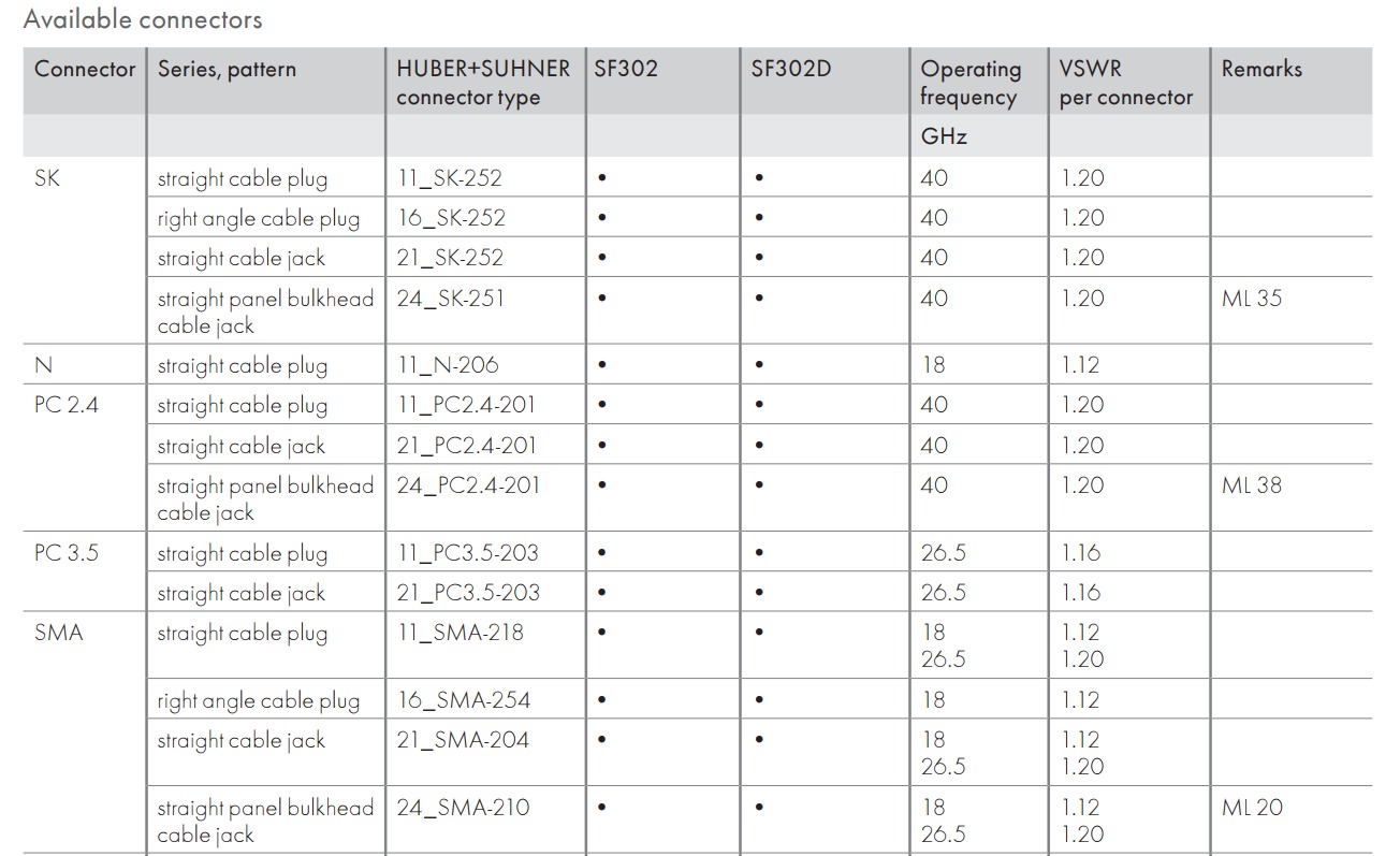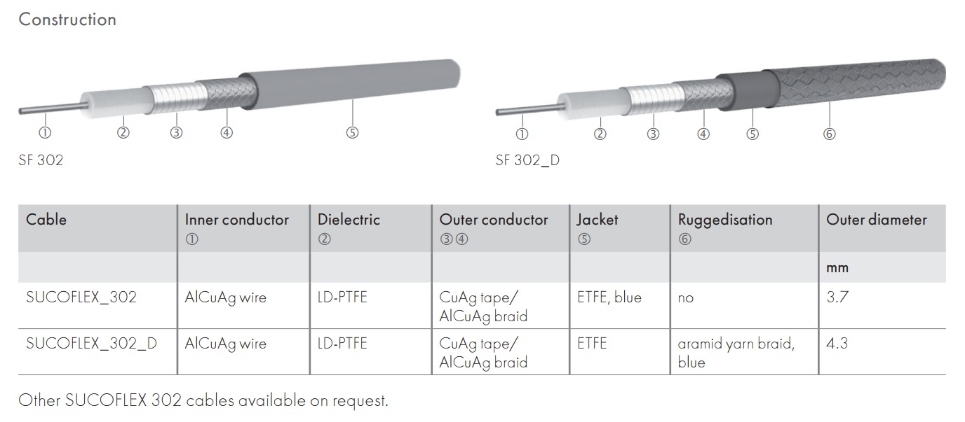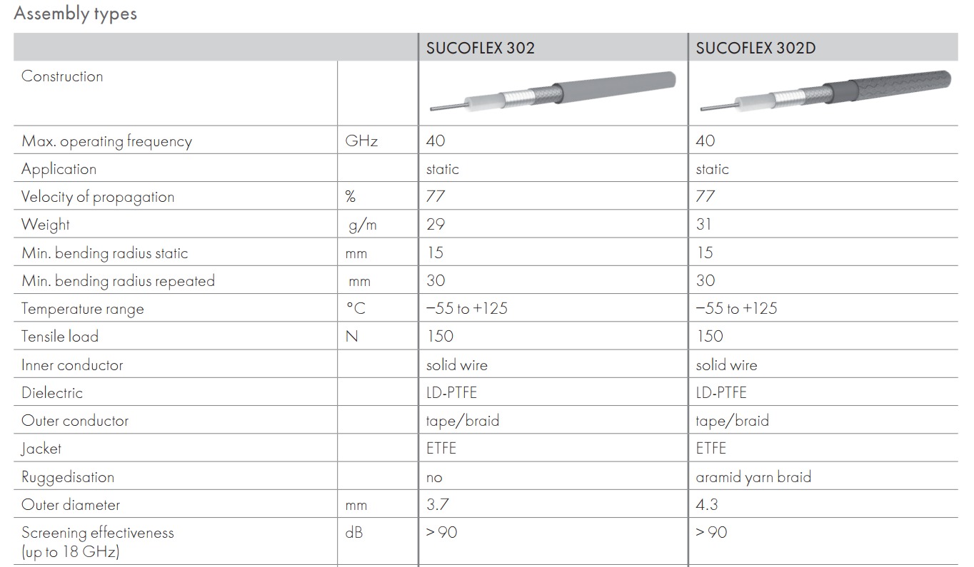 The SUCOFLEX® 302 light weight, high end cable assemblies are designed to provide optimal performance up to 40 GHz