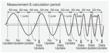 50밀리초의 데이터 업데이트 간격에서도 50/60Hz 기본에 대해 최대 500차 고조파를 분석합니다.