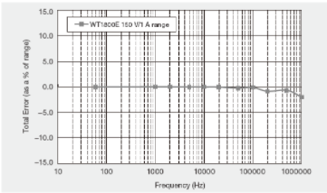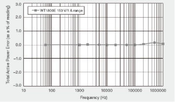광범위한 전압, 전류 및 주파수 조건에서 정확하게 측정합니다. WT1800E의 기본 전력 정확도는
