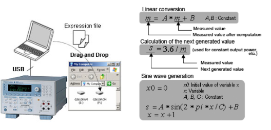 전용 연산자를 결합하여 GS610에서 사용자 정의 계산을 수행할 수 있습니다. 측정값의 선형 변환을