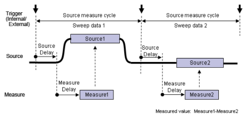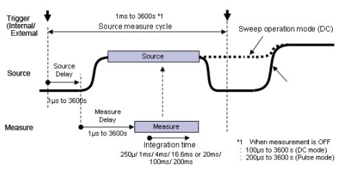 펄스를 인가한 후 부하 응답을 기다리며 측정할 때 필요합니다. 소스 측정 주기는 신호 생성 및 측정을