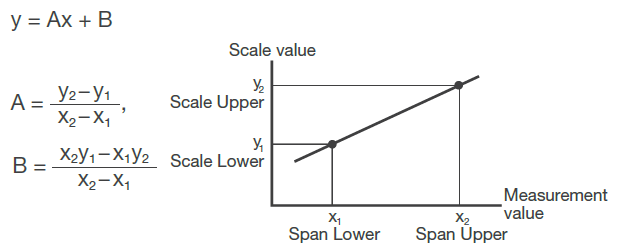 오프셋 B는 다음 식에 따라 결정됩니다. 스팬 상한 및 하한에 대한 스케일 값을 설정합니다.